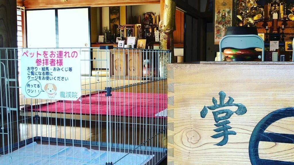 龍渓院では、大切な家族の一員であるペットとともにお参りいただけます。抱っこでの本堂内への同伴も可能で、堂内にケージのご用意もございますので、雨天時でも安心してご祈願やご供養をお受けいただけます。